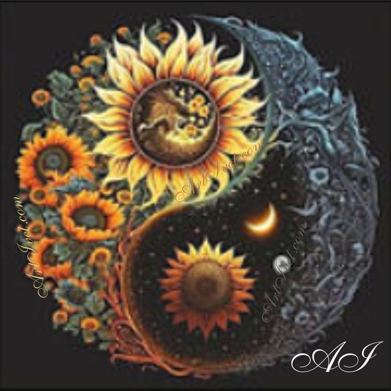 Pictura pe numere - Yin si Yang - Foc de floarea soarelui 40х40 сm