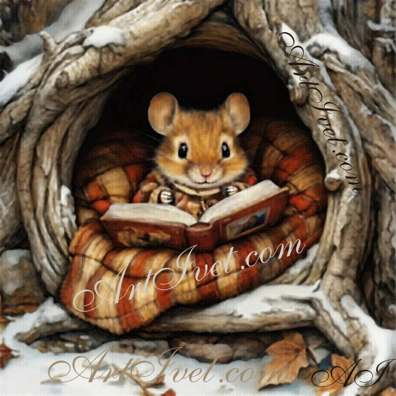 Pictura pe numere - Soricelul cititor 40х40 cm