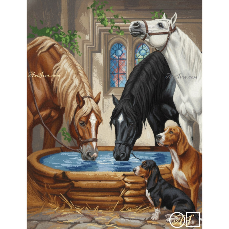 Un set de Goblen cu diamante contine: panza – baza cu o suprafata adeziva si o schema a imaginii tiparite pe ea, margele de diamante de diferite culori cu marcare ce corespunde cu locul lor de pe schema, un tabel special din plastic, o pinseta pentru preluarea si lipirea diamantelor, lipici si pix in cazul in care goblenul e cu diamante rotunde.
