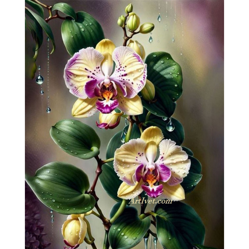 Pictura pe numere - Orhidei gingase cu nuante lilave