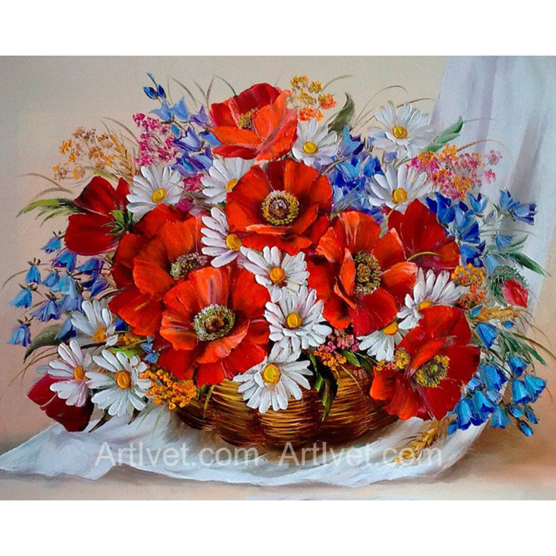 Pictura pe numere - Maci, margarete si clopotei