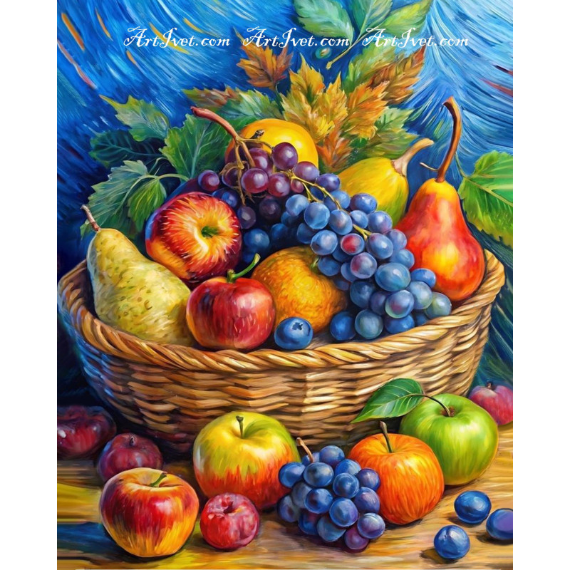 Pictura pe numere - Cadourile toamnei - Cos cu fructe