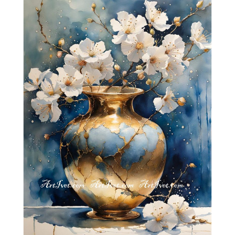 Pictura pe numere - Vaza aurita cu flori