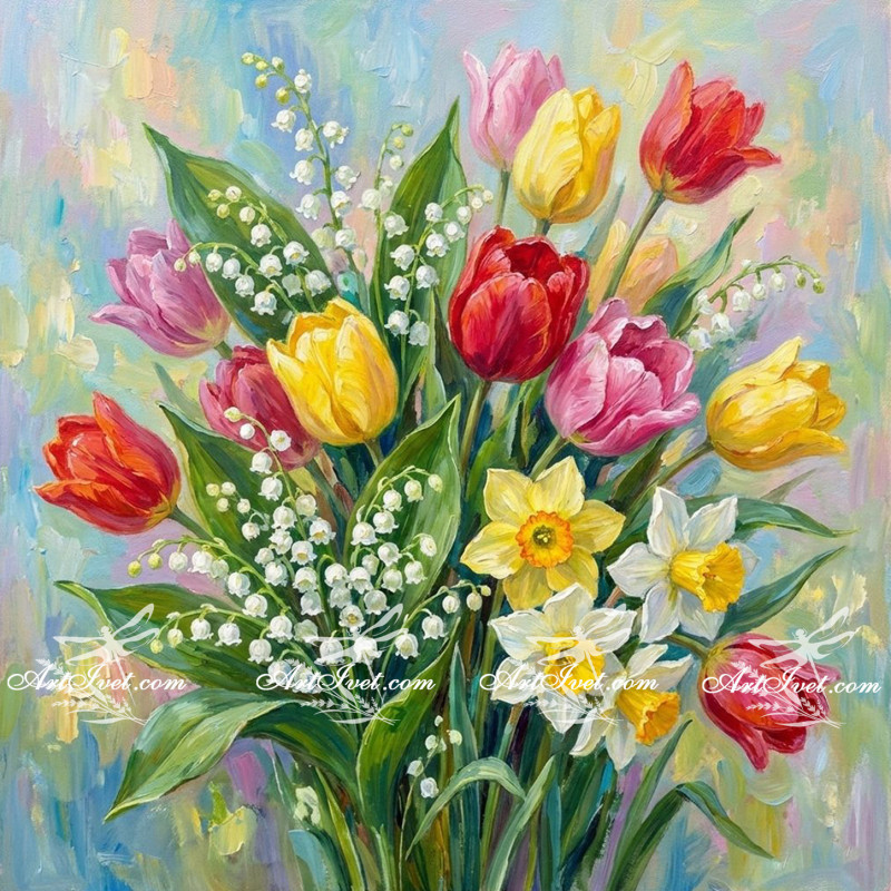 Pictura pe numere - Buchet in culorile primaverii 40х40 сm