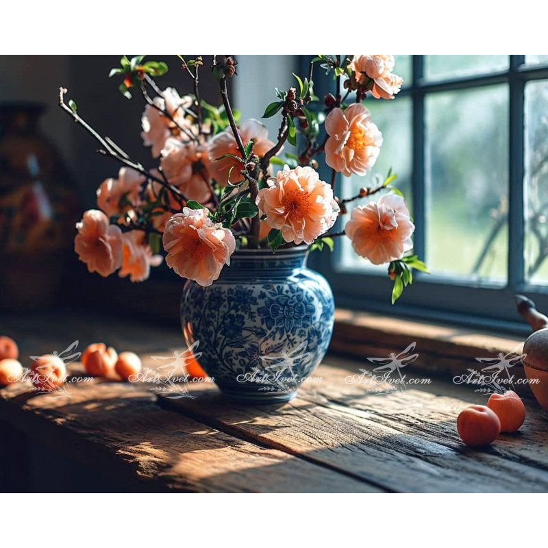 Pictura pe numere - Ramuri inflorite la fereastra 40х50сm
