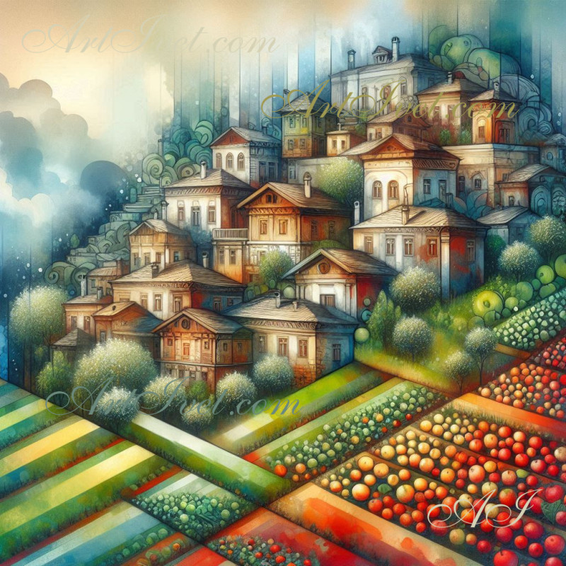 Pictura pe numere - Case stilate si frumoase 40х40 сm