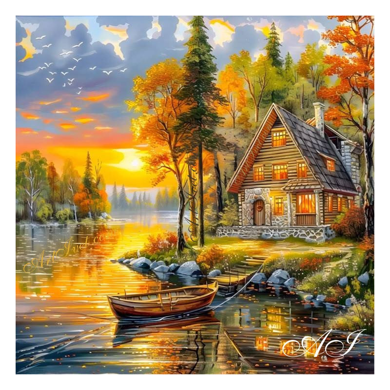 Pictura pe numere - Apus aurit peste casa pescarului 40х40 сm