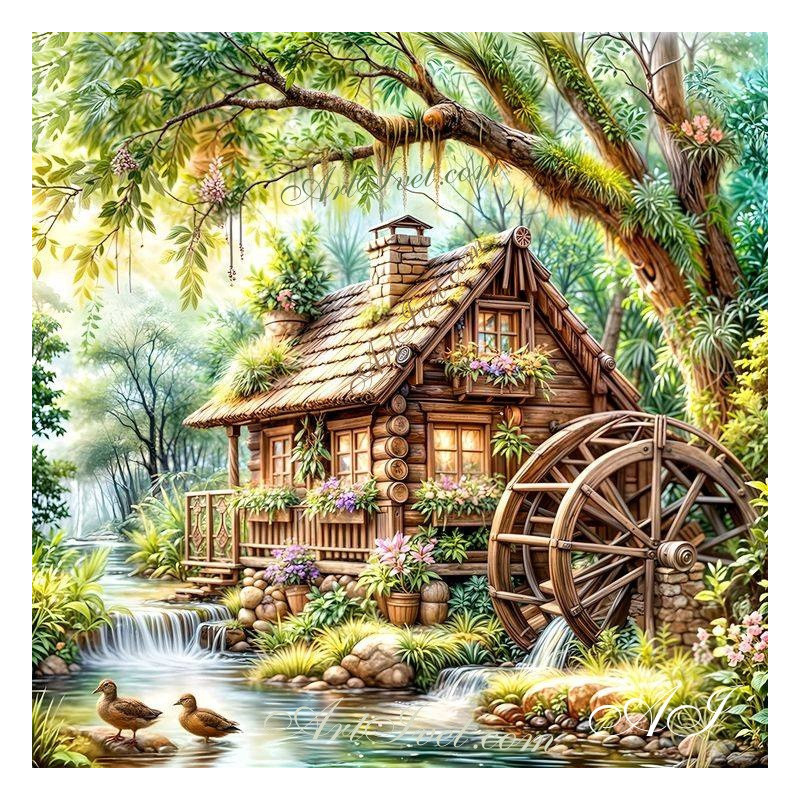 Pictura pe numere - Moara de apa in padure 40х40 сm