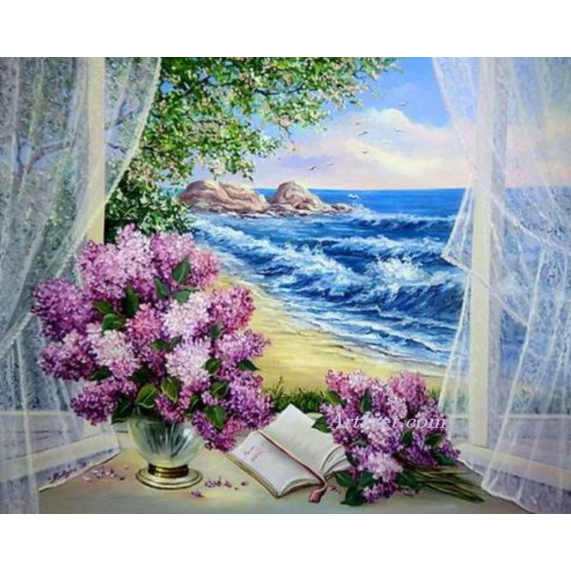 Pictura pe numere - Gingasie de liliac langa fereastra