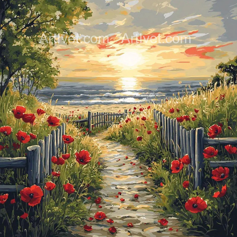 Pictura pe numere - Cararea cu maci 40х40 сm