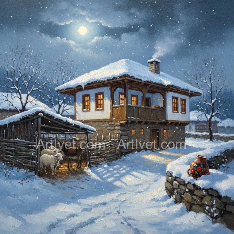 Pictura pe numere - La stana de oi iarna 40х40 сm