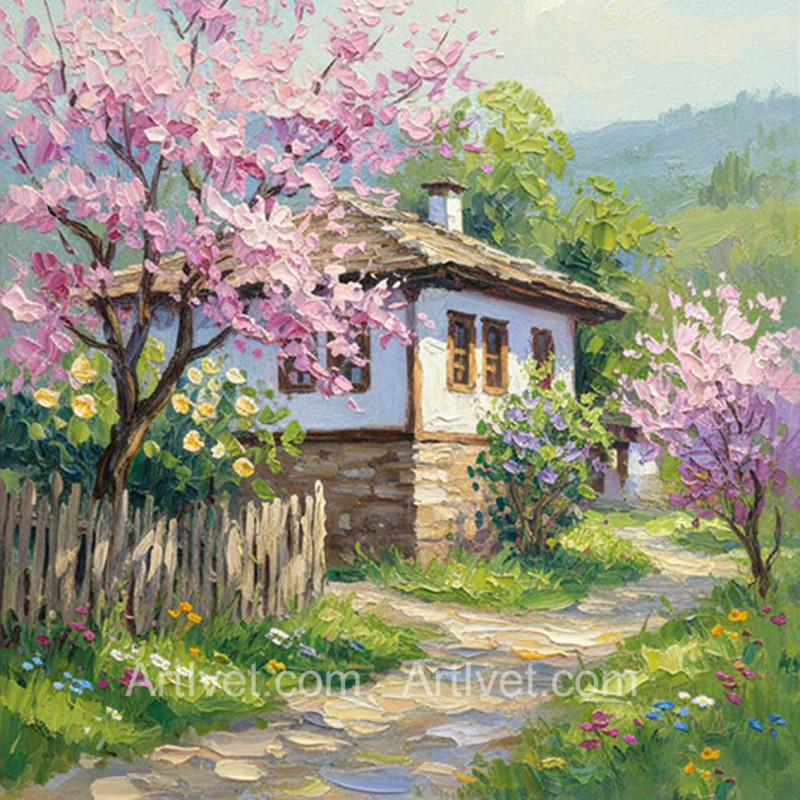 Pictura pe numere - Gingasia primaverii in sat 40х40 сm