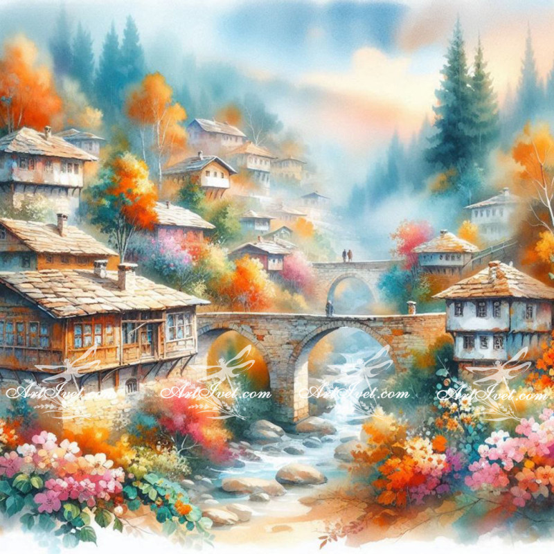 Pictura pe numere - Doua poduri gemeni 40х40 сm