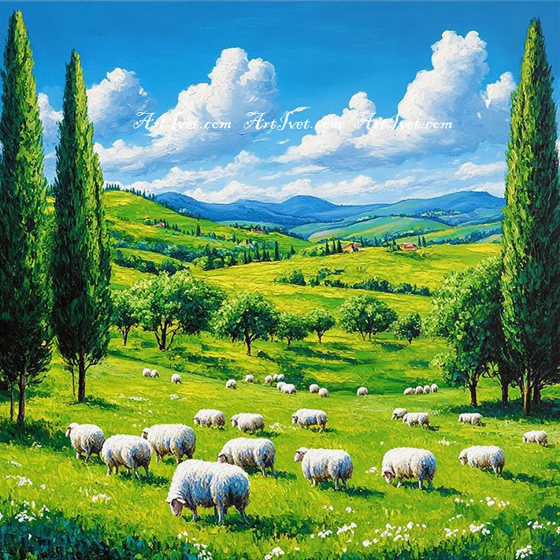 Pictura pe numere - O turma pascand pe pasune 40х40 сm