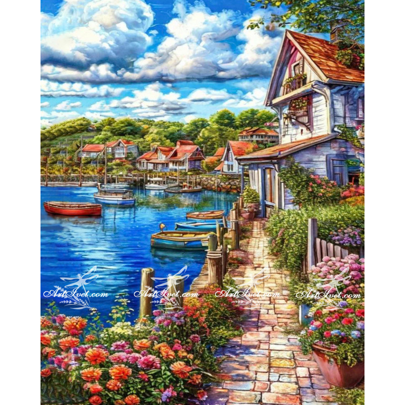 Pictura pe numere - Strada cu flori de pe malul marii 40х50сm