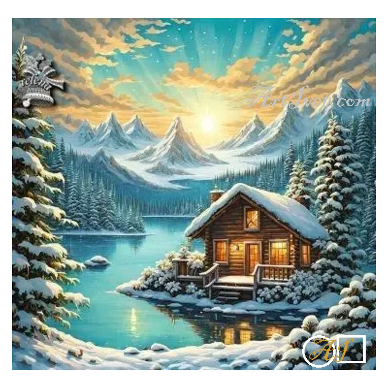 Goblen de diamante - Cabana pe malul lacului inzapezit