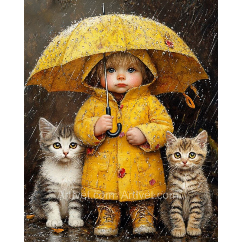 Setul conține pensule, culori acrilice amestecate în prealabil, potrivite pentru desenul respectiv, și tot ce este necesar pentru realizarea tabloului finit.