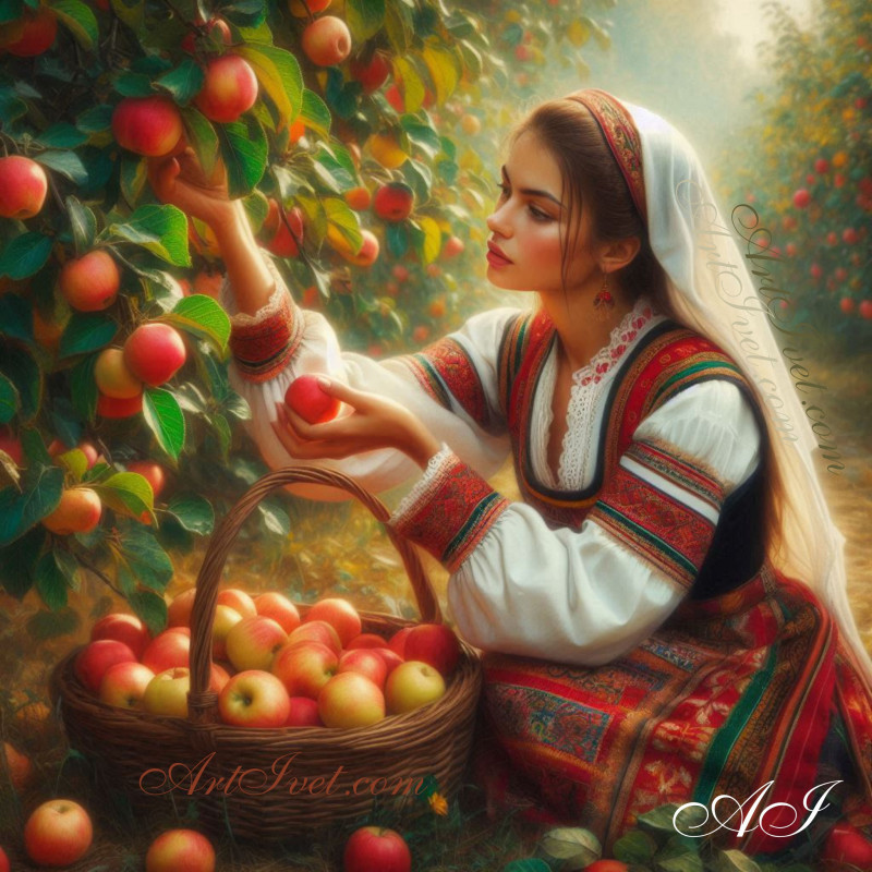 Pictura pe numere - Recolta merelor 40х40 сm
