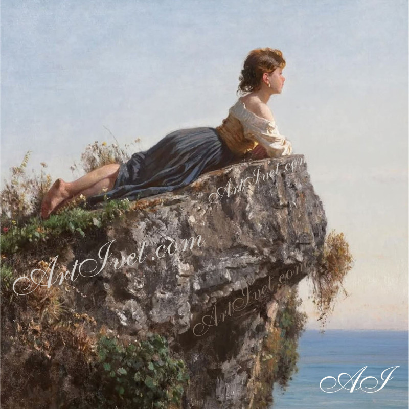 Pictura pe numere - Fata de pe stanca 40х40 сm