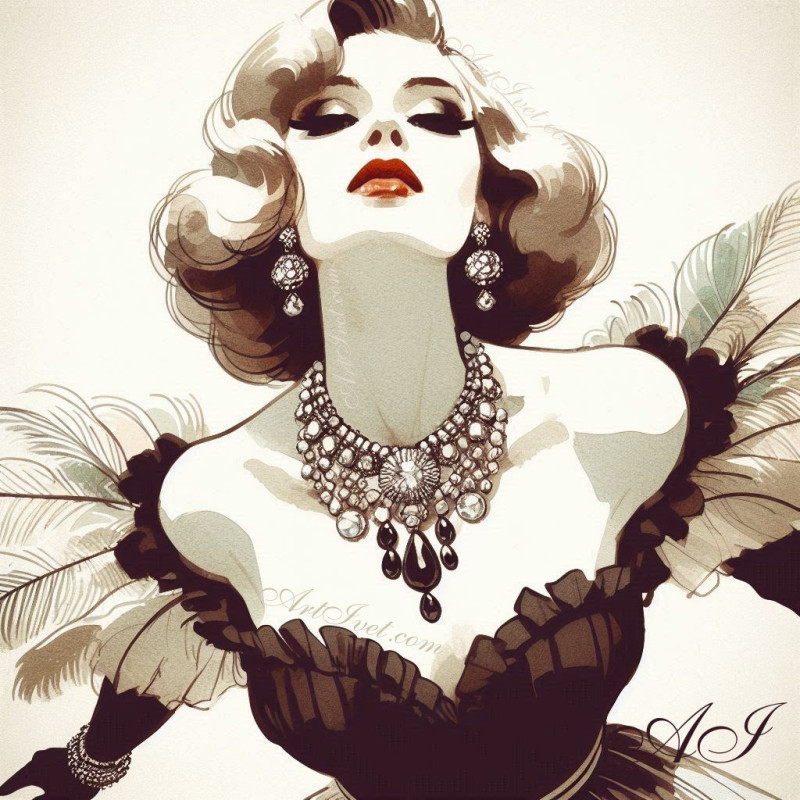 Pictura pe numere - Doamna cu rochie neagra si colier 40х40 cm