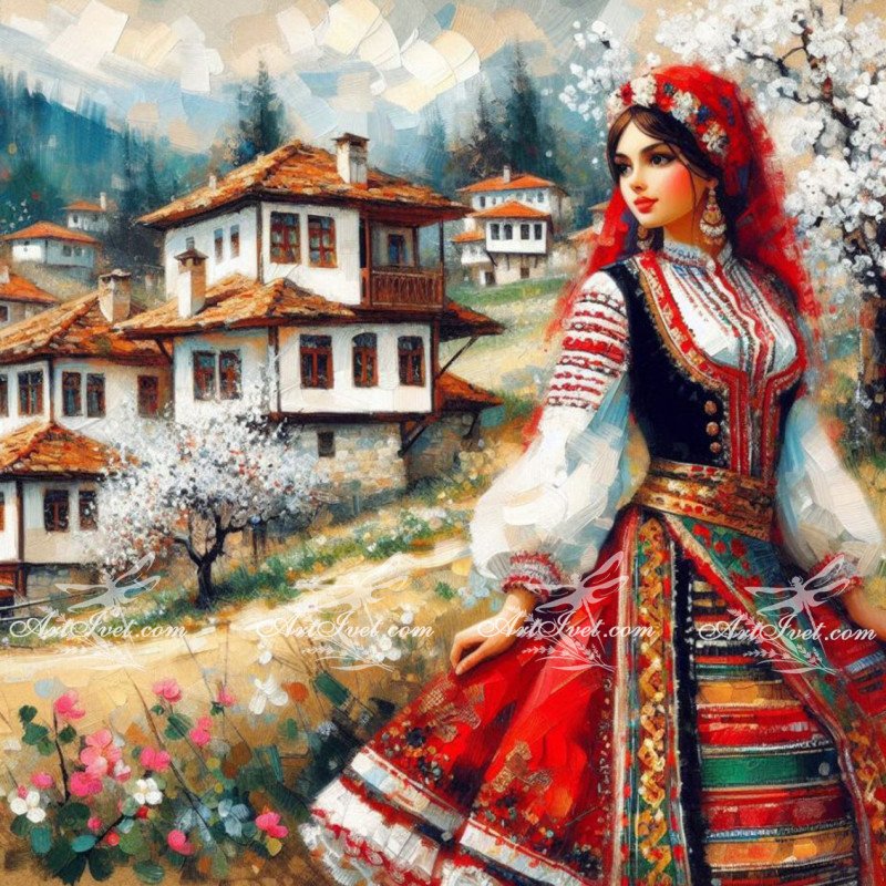 Pictura pe numere - Cristina - fata cu haine traditionale 40х40 сm