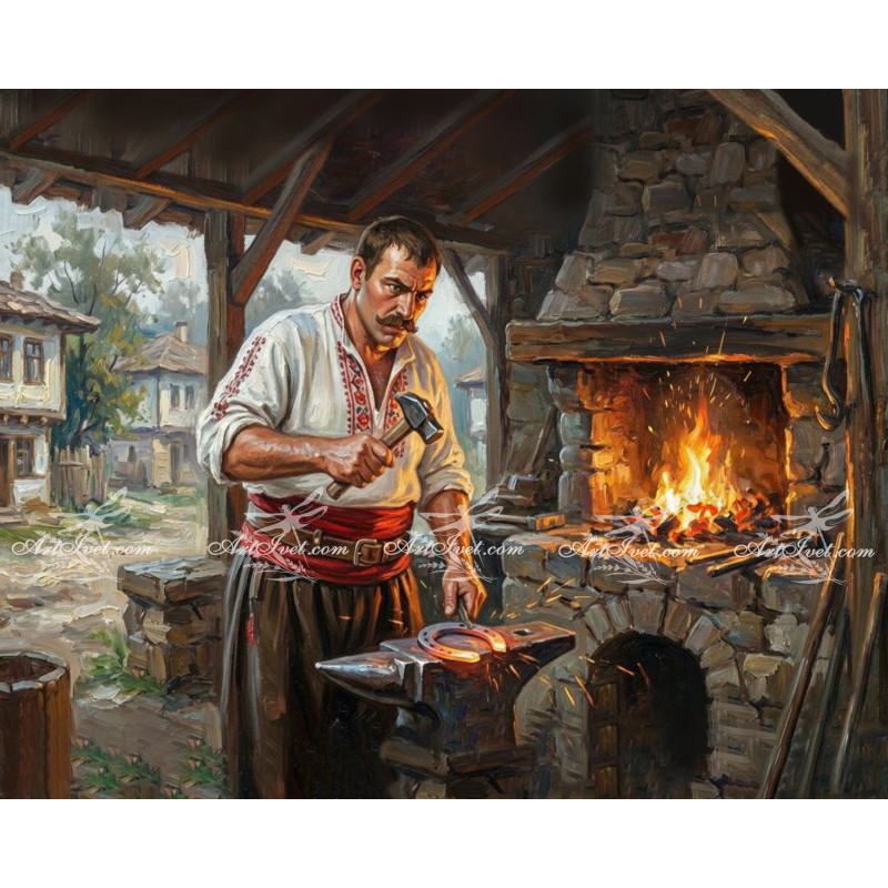 Pictura pe numere - Fierarie in vechiul Troyan 40х50сm