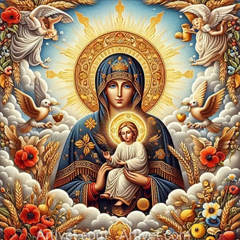 Pictura pe numere - Icoana - Fecioara cu pruncul - Fertilitate 40х40 сm